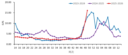 2、流感样病例百分比:流感样病例占门急诊就诊病例的比例。