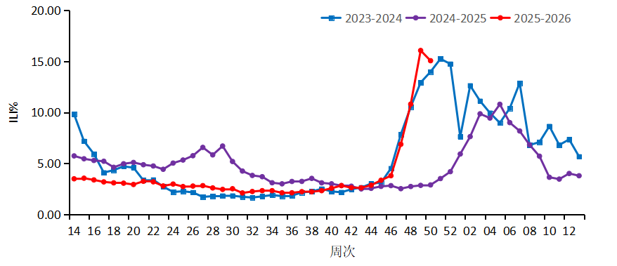2、流感样病例百分比:流感样病例占门急诊就诊病例的比例。