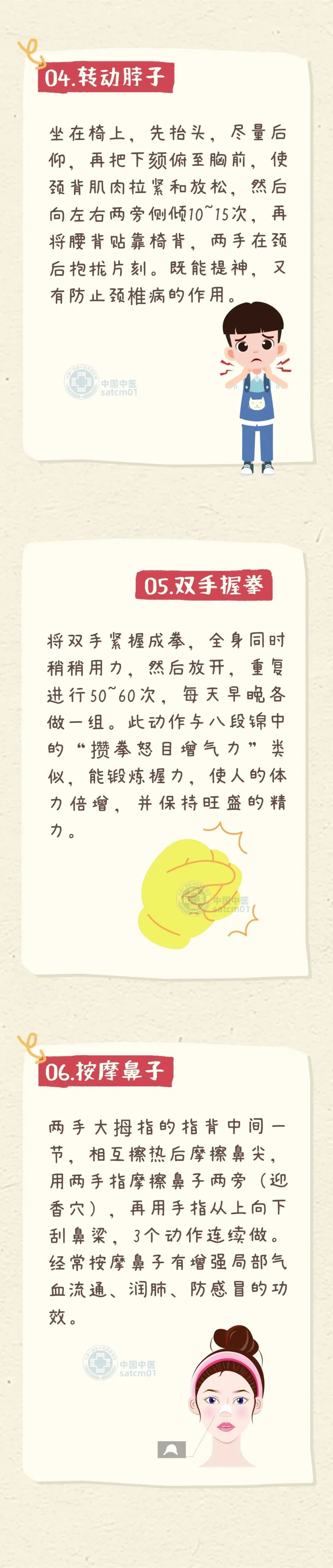 长期规律的锻炼对健康十分有益,但许多工作繁忙的年轻人或体力较弱的老年人难以坚持,下面推荐几个健康养生动作,大家在平时生活中抽出几分钟稍微动动就可以养生,快来一起学习。