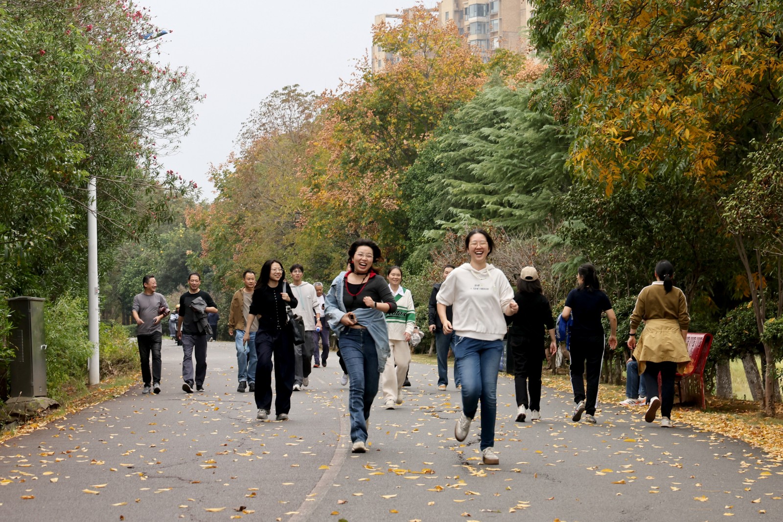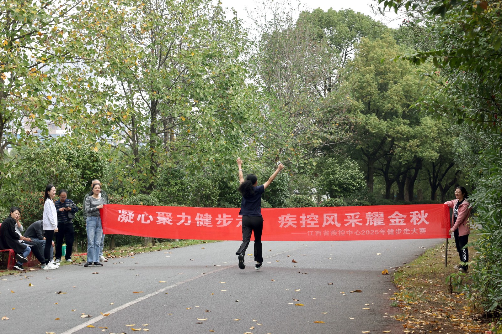 本次健步走活动全程3公里,起点设于艾溪湖海洋公园门口,终点定格在明德广场附近。沿途湖水波光粼粼,岸边绿树成荫,鸟鸣与花香交织成自然乐章。职工们或三五结伴、谈笑风生,在漫步中交流工作与生活;或步伐铿锵、健步如飞,在竞走中展现疾控人的活力与激情。大家沉浸式感受着湖畔的秋日美景,尽情享受运动带来的轻松与愉悦,成为艾溪湖畔一道亮丽的风景线。