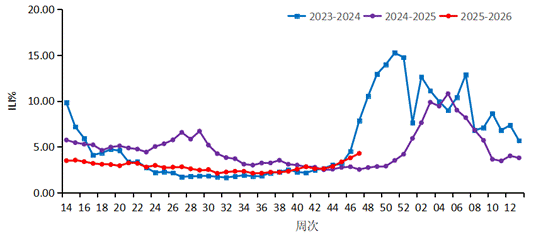 2、流感样病例百分比:流感样病例占门急诊就诊病例的比例。