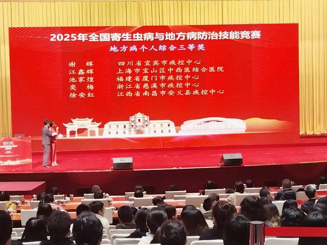 2025年11月18日至19日,由国家疾控局主办,中国疾病预防控制中心寄生虫病预防控制所、中国疾病预防控制中心地方病控制中心承办,云南省疾病预防控制中心、云南省寄生虫病防治所、云南省地方病防治所协办的2025年全国寄生虫病和地方病防治技能竞赛在云南昆明隆重举行。全国31个省(自治区、直辖市)和新疆生产建设兵团96名队员齐聚昆明,同台竞技。由江西省疾控局组建的江西代表队,凭借扎实的专业知识储备和业务实操能力,经过激烈角逐斩获三项荣誉,分别是全国地方病防治技能竞赛团体三等奖、地方性氟中毒个人技能一等奖以及地方病个人综合三等奖。